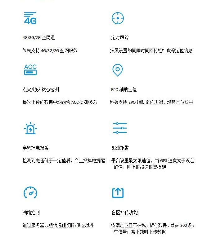 產品概述:JH-A4G采用工業級高集成度設計,安裝使用簡單,上電即可工作。9~90V的寬電壓范圍,適用于各類車輛,搭配穩定的全球定位服務平臺,便可實現遠程車輛管理,為車輛提供全天候實時的定位管理